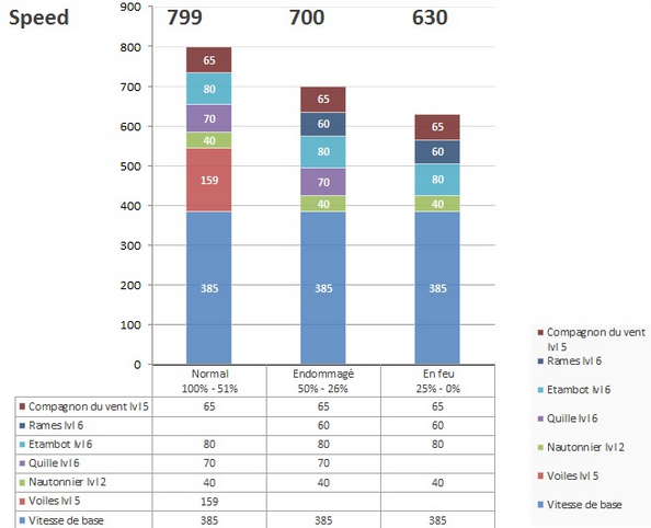 Voilà mon raisonnement, d'après le tableau de la vitesse ci-dessous l'étambot lvl 6 et le skill "Compagnon du vent" lvl 5 reste actifs dans les 3 étapes de votre navire (Normal, Endommagé et en feu).